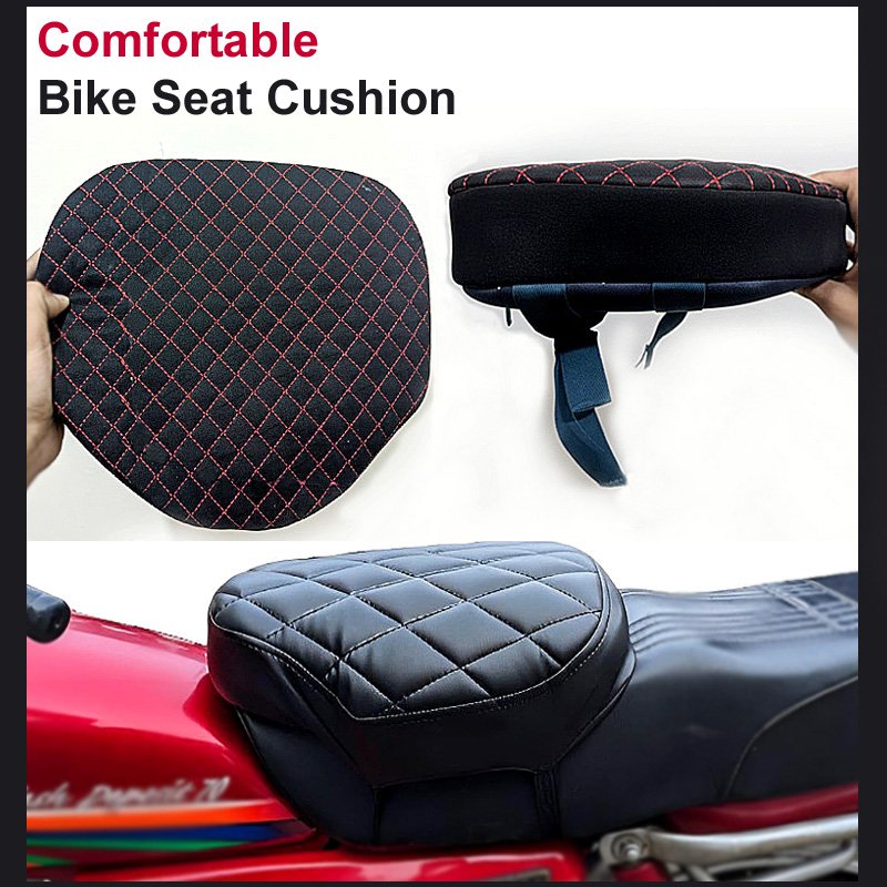 Short Description: Product Name: Bike Seat Cushion Material: High-density foam + synthetic cover Design: Stitched patterns (random) Color: Assorted (random) Fit: Universal motorcycle fit Installation: Tool-free strap mounting Function: Shock absorption & riding comfort Quantity: 1 Piece Product Description: Transform every journey into a smooth and enjoyable experience with this high-density foam cushion. Scientifically designed to contour to your body, it distributes weight evenly to reduce strain on the lower back, hips, and tailbone. Whether you are navigating city streets or cruising long distances, the thick padding provides maximum support and relief from pressure. The waterproof top layer features a stylish black base with a red diamond cross-stitch pattern, ensuring durability and a modern look in any weather condition. With its secure strap system and anti-slip backing, the cushion stays firmly in place even on bumpy roads. What’s in the box: 1 x Bike Seat Cushion Weight: 0.4­ SKU: 251227175507­
